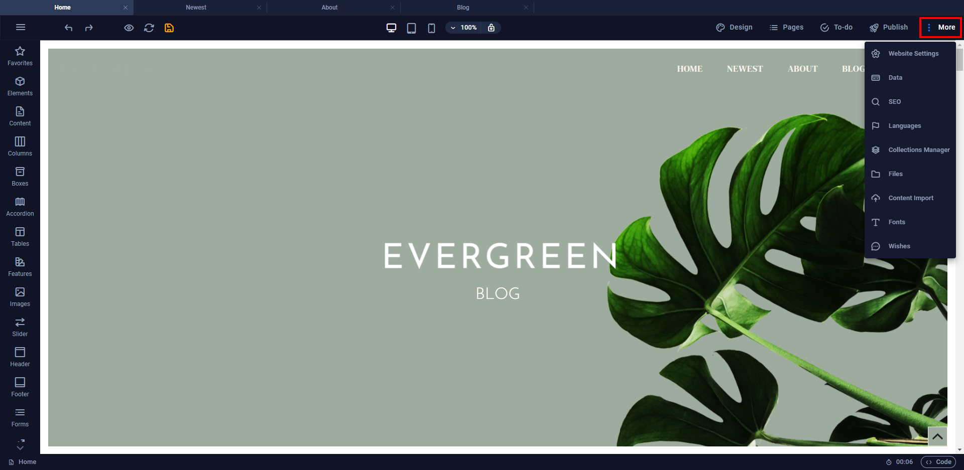 In dit artikel introduceren we de lay-out van de Website Builder (CMS) en geven we details over verschillende belangrijke menu's en functies.